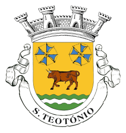 Escudo de ouro, um boi passante, de sua cor, entre duas armações de moinho de negro, cordeadas do mesmo e vestidas de azul, em chefe e um ondado de verde, carregado de uma cotica ondada de prata, em ponta. Coroa mural de prata de quatro torres. Listel branco, com a legenda a negro: «S. TEOTÓNIO».